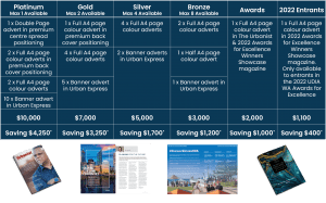 The below packages provide you with a presence in UDIA WA’s quarterly thought-leadership publication The Urbanist and the upcoming edition of the UDIA WA 2022 Awards for Excellence Winners Showcase magazine which highlight the best and brightest people and projects in the urban development industry at the moment (Click here to view last year’s Winners magazine).